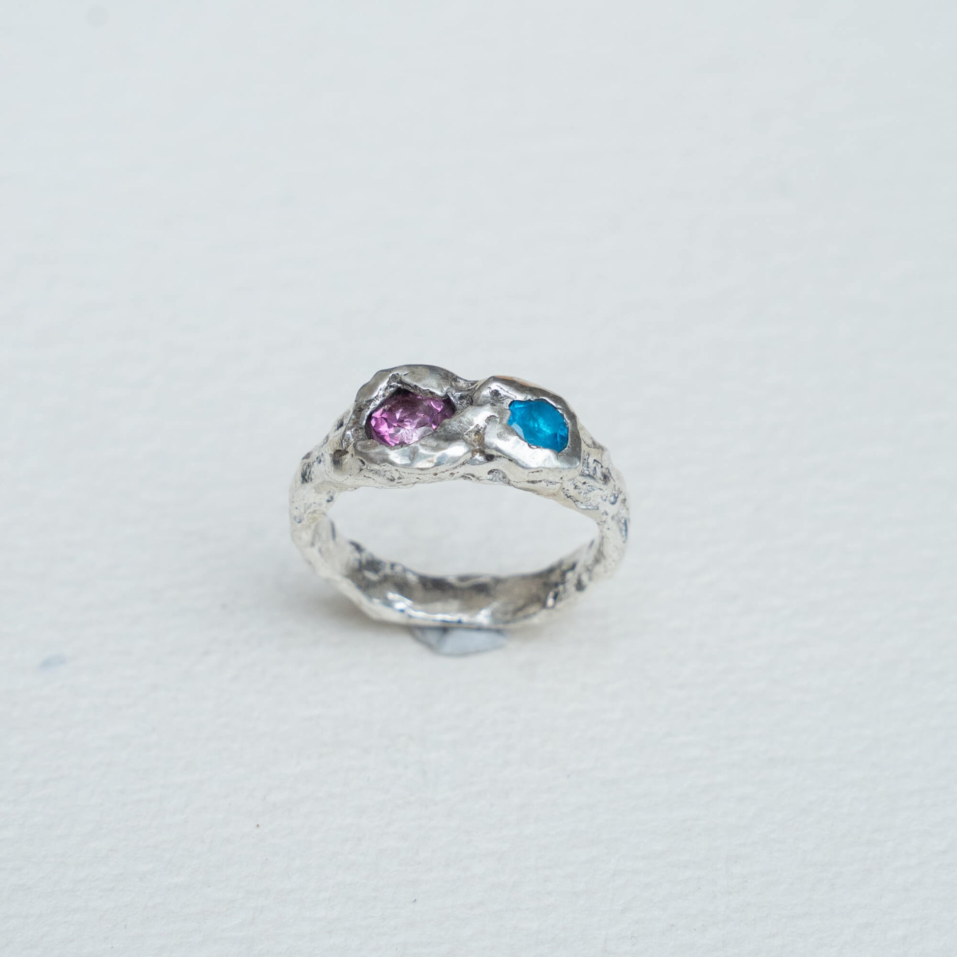 Entre la luz de dos mundos se encuentra este anillo: el topacio rosa, suave y delicado como un suspiro de ternura,y el apatito, profundo y sereno como un cielo de verano.Juntas, crean una joya que celebra la armonía entre la dulzura y la claridad.