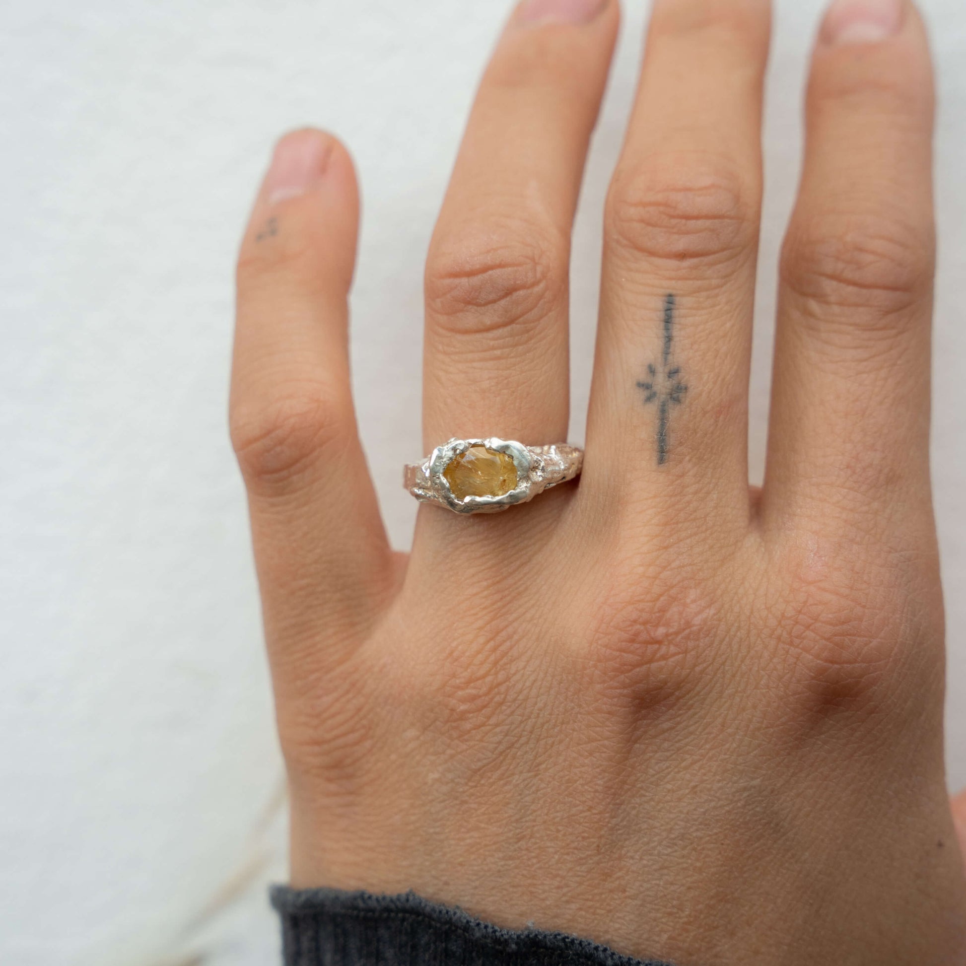 Anillo de Lava cuarzo rutilado cabello de ángel